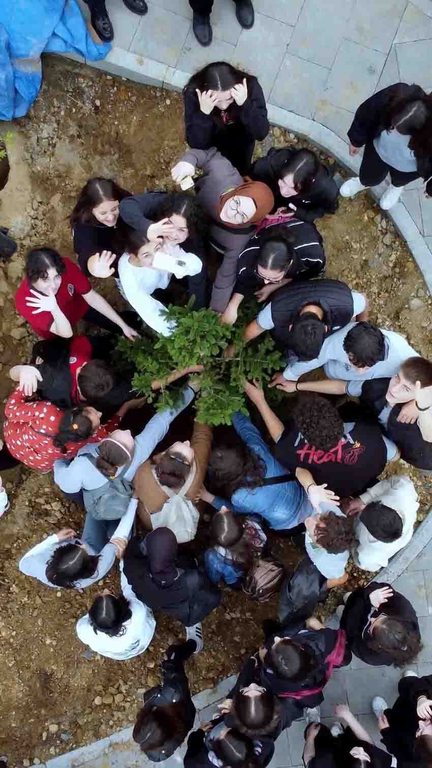 Pazar Kaymakamı Mustafa Akın’ında eşlik ettiği programda öğrenciler Türk bayrakları ve Atatürk posterleri ile ziyaret ettikleri kaleyi gezdikten sonra çınar ağacını toprakla buluşturdu.
