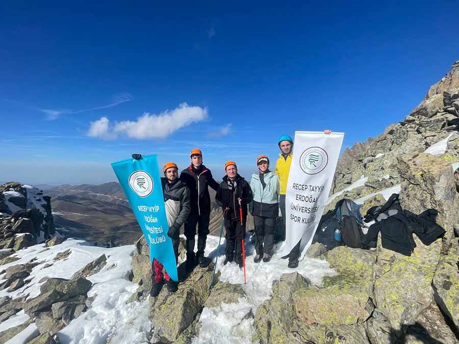 Ekip, ardından, Avusor Yaylası’nda bulunan 3600 rakımlı Kemerli Kaçkar Zirvesi’ne tırmanış gerçekleştirerek Kulüp Yönetim üyeleri Türk Bayrağı ve RTEÜ Spor Kulübü bayrağı açtılar.