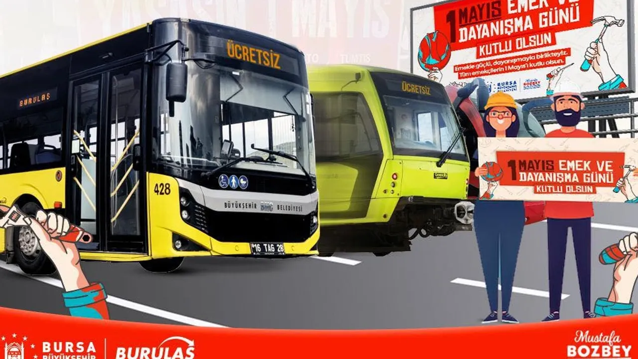 Bursa Büyükşehir Belediyesi olarak emeğin ve emekçinin yanında olmaya devam edeceklerini söyleyen Başkan Mustafa Bozbey, “1 Mayıs Emek ve Dayanışma Günü’nde kutlama ve etkinliklerin coşkulu kalabalıklarla yapılabilmesi amacıyla BursaRay ve tramvay hatları ile resmi plakalı Burulaş otobüsleri, 1 Mayıs 2025 Perşembe günü 08.00 ile 18.00 saatleri arasında BursaKart kullanmak suretiyle ücretsiz olarak hizmet verecektir” dedi.