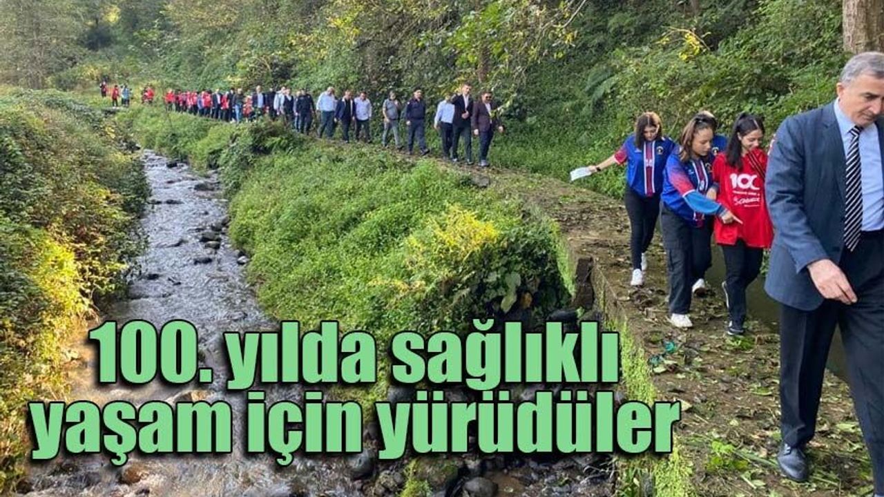 HABER:ARZU ERBAŞ - İyidere’de Cumhuriyetin 100. Yılı çeşitli etkinliklerle kutlanıyor. İlçede sağlıklı yaşam için farkındalık yaratmak amacıyla etkinlikler kapsamında doğa yürüyüşü yapıldı. İlçe Kaymakamı Eray Gürsoy, İlçe Belediye Başkanı V. Hüseyin Mete, ilçe devlet hastanesi çalışanları, kurum müdürleri, muhtarlar, öğretmenler ve öğrencilerin katıldığı etkinlik Pileki Mağarası önünden başladı. Etkinliğe katılanlar doğa içerisindeki patika yollardan ilerleyerek mesire alanına kadar yürüdü.