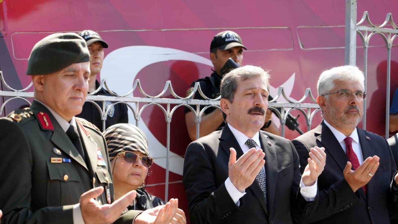 Törene 15 Temmuz darbe girişimi gecesi İstanbul Kartaltepe’deki kışlasında hain darbecilerle saatlerce çatışarak ağır yaralanan Samsun Garnizon Komutanı Tümgeneral Davut Ala da katıldı. Vücuduna isabet eden 8 kurşuna rağmen sancağı düşürmeyen, kışlasını hainlere teslim etmeyen ve bu süreçte 25 kez ameliyat olduktan sonra tekrar görevine dönen dönemin albayı, şimdinin ise Samsun Garnizon Komutanı Gazi Tümgeneral Ala’nın çatışmada kopan parmağının bulunduğu eli ise dua sırasında dikkat çekti.