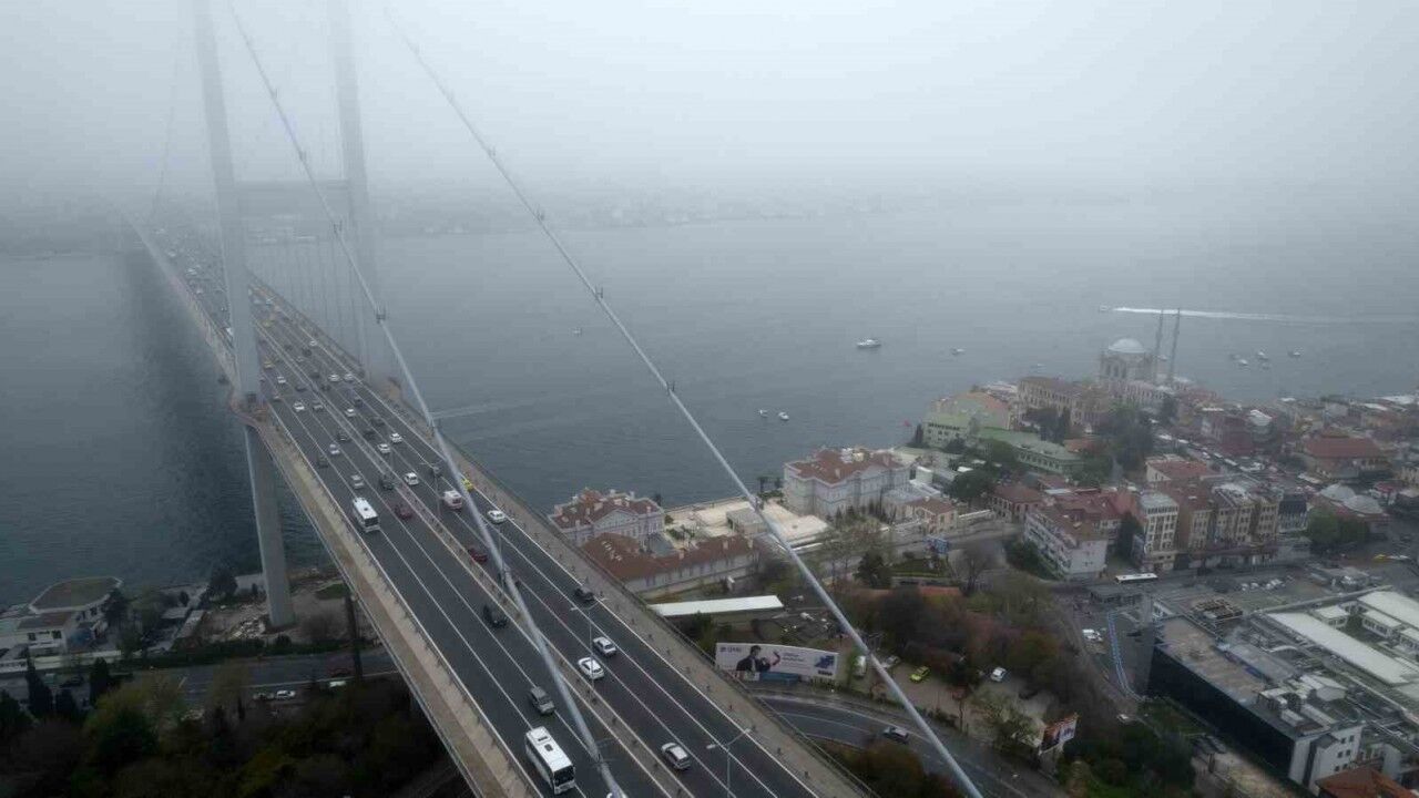 İstanbul’da gece saatlerinde başlayan sis, sabah saatlerinde özellikle Boğaz ve çevresinde etkili oldu. Havadan çekilen görüntülerde, İstanbul Boğazı’nda sis bulutları arasından süzülen köprü ve üzerindeki araçlar, eşsiz bir manzara oluşturdu. Sis şehre farklı bir atmosfer katarken, İstanbul’un simgelerinden olan 15 Temmuz Şehitler Köprüsü’nün ayakları zaman zaman sis içinde kayboldu.