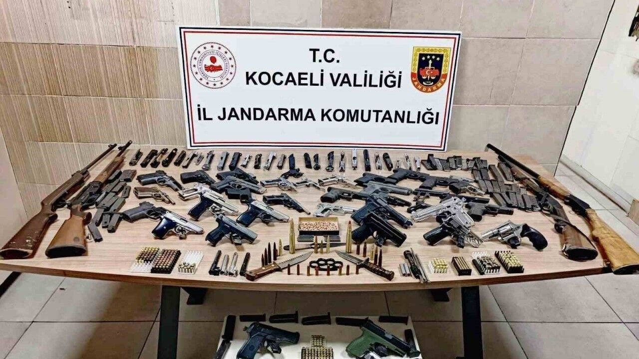 Kocaeli İl Jandarma Komutanlığınca, silah kaçakçılığı suçu ile mücadele çerçevesinde 16 Mayıs’ta Derince ilçesinde iş yeri ve ikamette aramalar yapıldı. Yapılan aramalarda 14 ruhsatsız tabanca, 4 ruhsatsız av tüfeği, 28 tabanca üst kapağı, 26 tabanca gövdesi, 20 numaratör aparatı, 105 tabanca şarjörü, 8 tabanca namlusu, 3 namlu açma aparatı, 3 tabanca kabzası, 247 tabanca fişeği, 93 av tüfeği fişeği, 60 kuru sıkı tabanca fişeği, 2 fişek, 165 fişek ateşleme kapsülü, 2 kama ve muşta ele geçirildi. Olaya ilişkin E.Ö. gözaltına alındı. İfadesi alınan şüpheli, çıkarıldığı mahkemece adli kontrol şartıyla serbest bırakıldı.