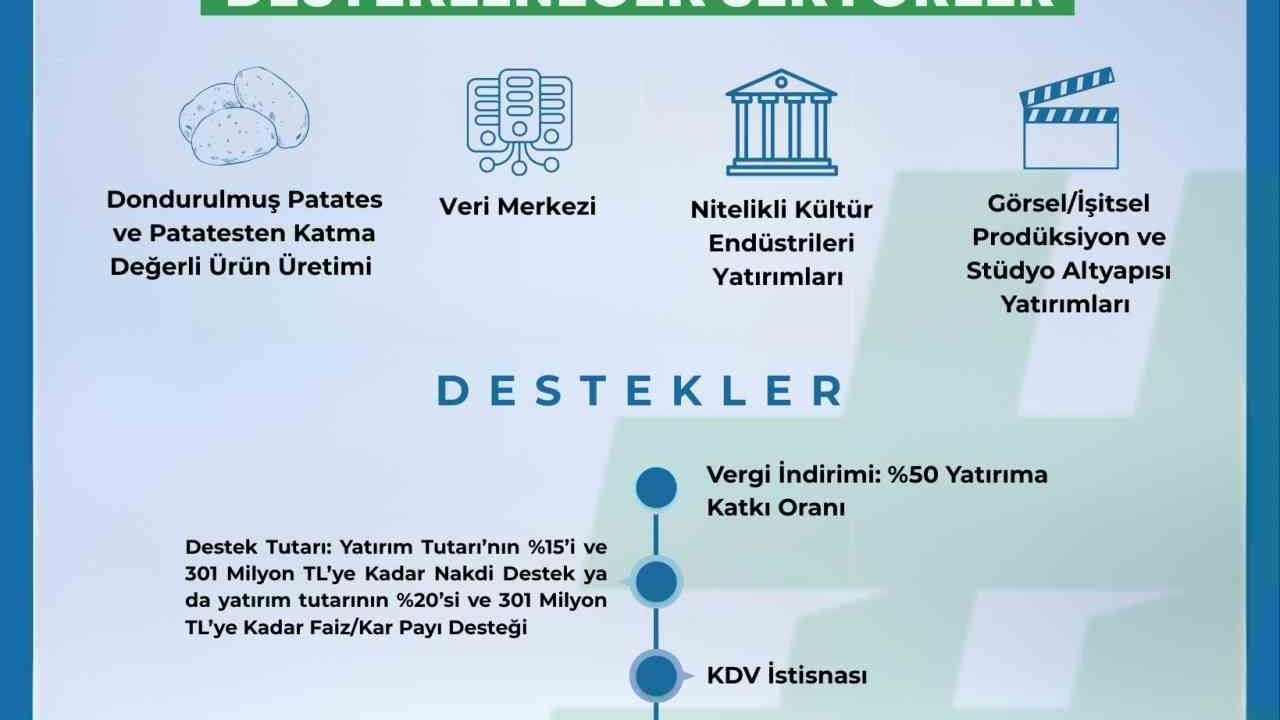 Ayrıca yatırımcılara, yatırım tutarının yüzde 15'ine kadar nakdi destek veya yüzde 20'sine kadar faiz/kar payı desteği imkânı da sunuluyor.
