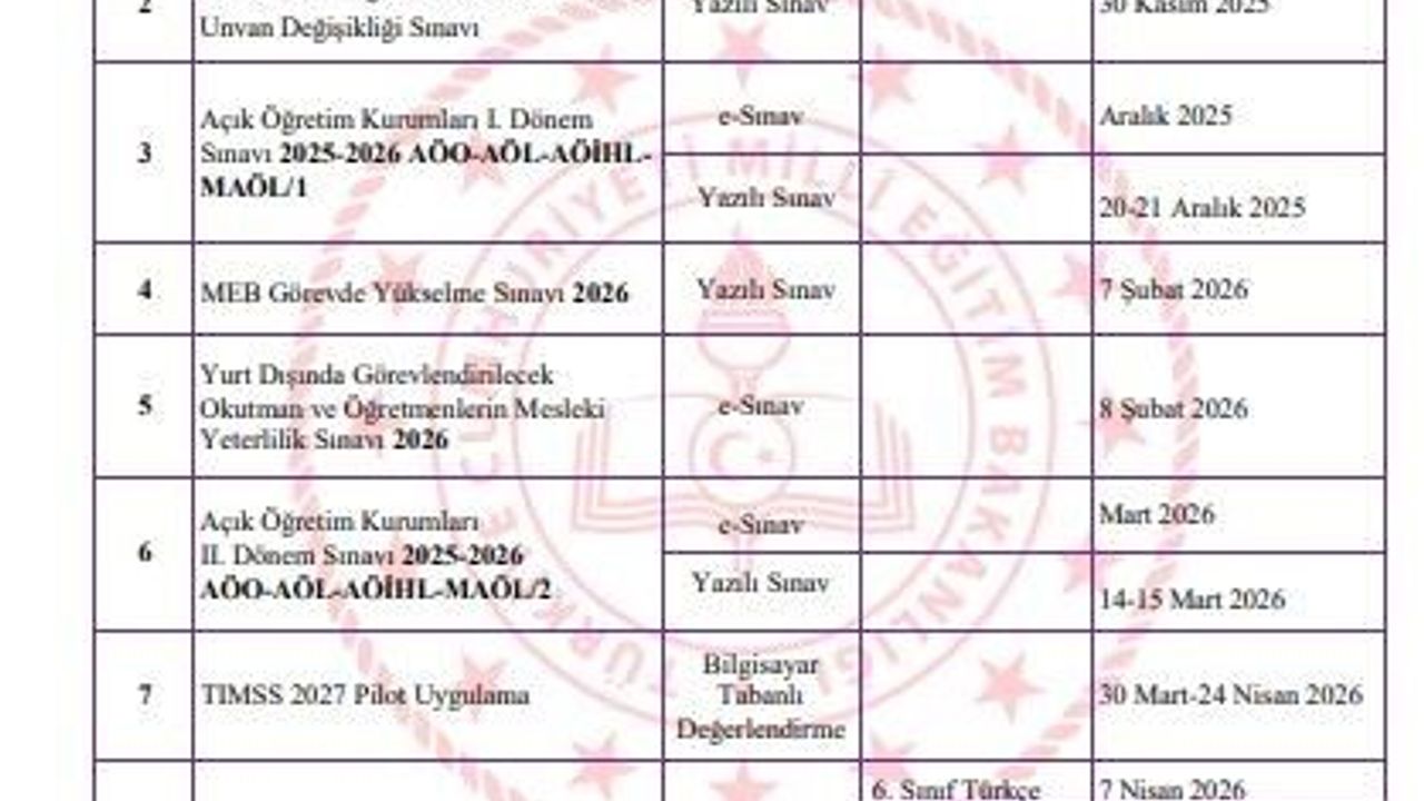 Milli Eğitim Bakanlığı tarafından 2026 yılı sınav uygulama takvimi yayımlandı.