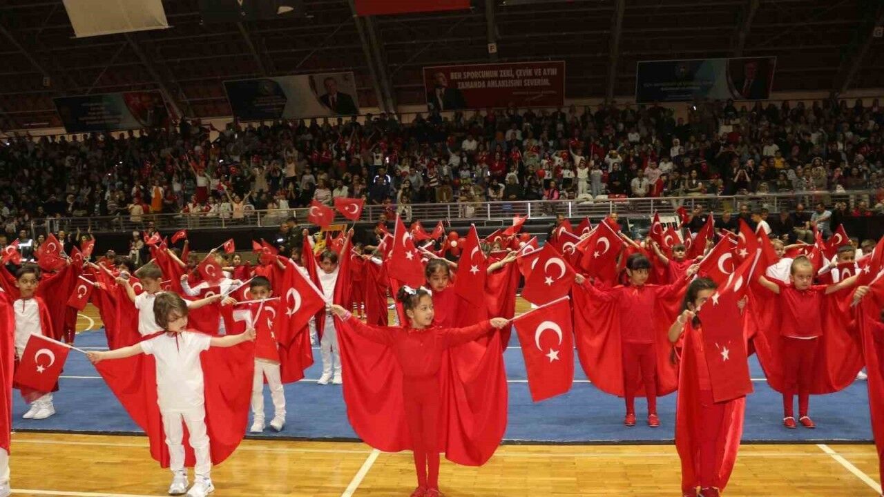 Saygı Duruşu ve İstiklal Marşının okunmasıyla başlayan Kurtdereli Spor Salonundaki kutlamalarda anaokulu, ilkokul ve ortaokul öğrencilerinin hazırladığı gösteriler yer aldı. Öğrenciler hazırladıkları koreografilerle izleyenler tarafından büyük alkış aldı. Kutlamaların finalinde gösteriler yapan öğrencilerin hazırladığı 105 yıl görseli ile il protokolü öğrencilerle birlikte fotoğraf çektirdi.