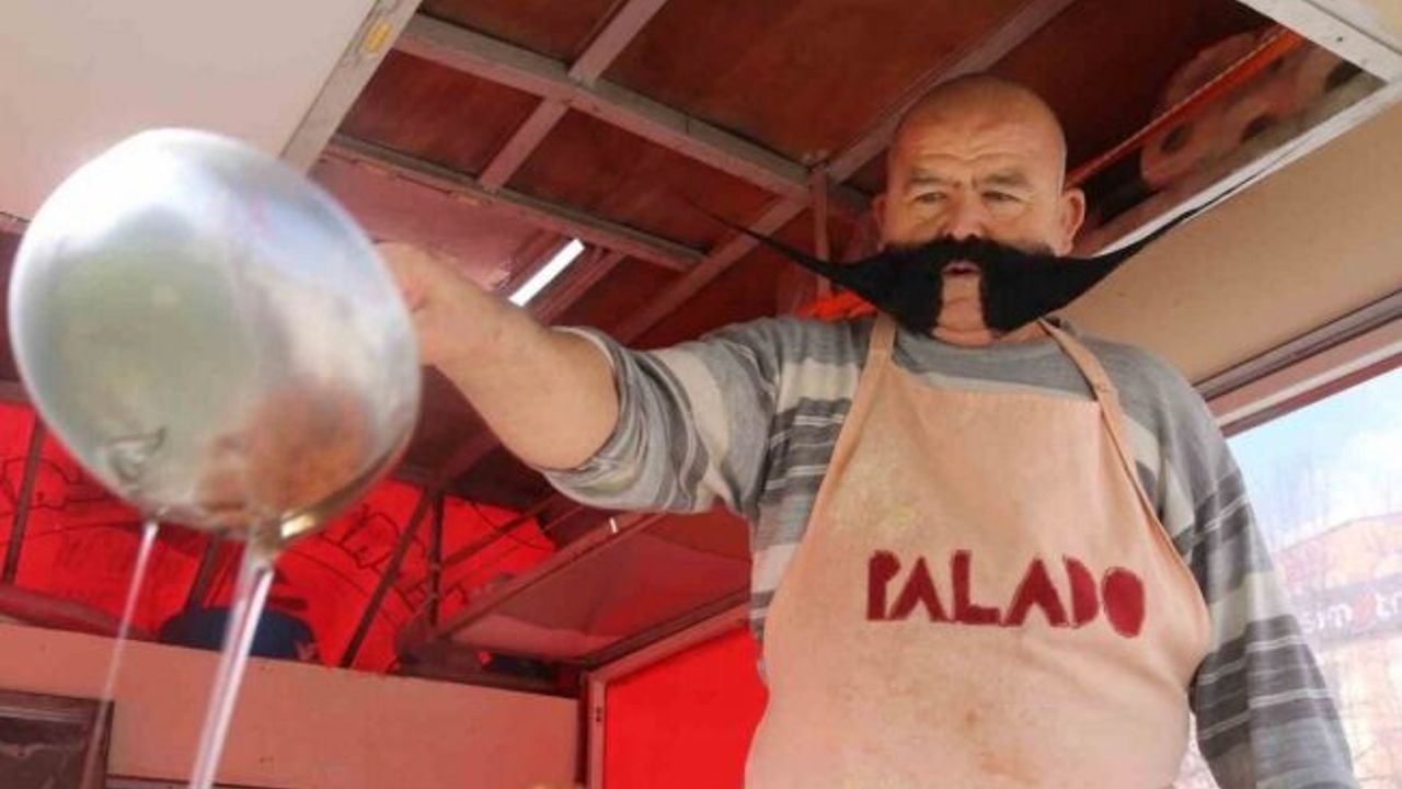 Bursa’da 40 yıldır tatlıcılık yaparak geçimini sağlayan 55 yaşındaki ‘Pala’ lakaplı Ramazan Demir, dedesine özenip bıyık bırakmaya başladı. 25 yıldır uzattığı bıyığı 80 santimetreye ulaşan Demir, 4 yıl önce kesip kısalttığı bıyıklarını pişman olup tekrar uzattığını söyledi.