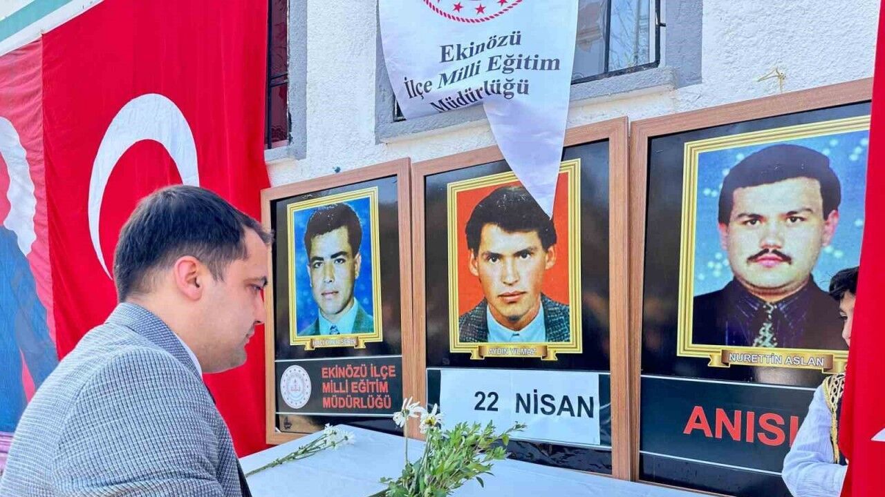 Kahramanmaraş’ın Ekinözü ilçesinde 22 Nisan 1996 tarihinde teröristler tarafından kuşuna dizilerek şehit edilen 3 öğretmen, şehadetlerinin 29. yılında unutulmadı.
