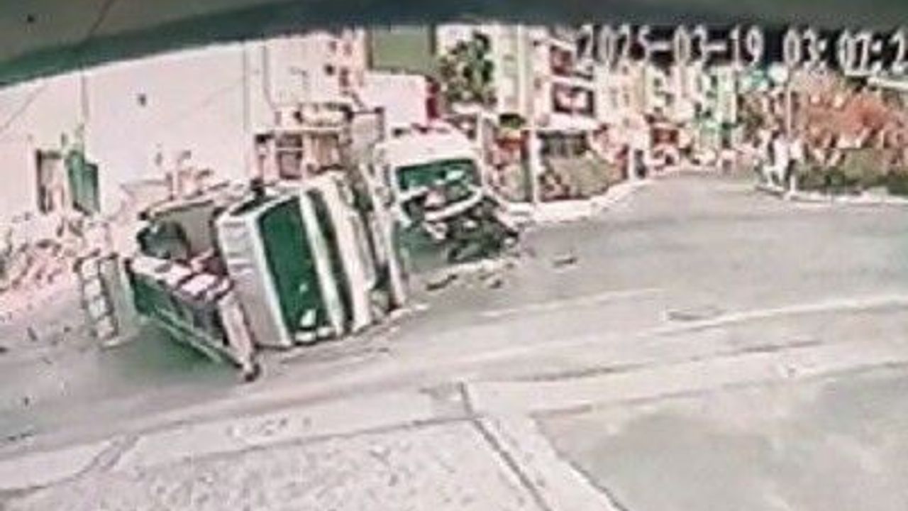 Kaza sabah saatlerinde, Erdal Yaklav Caddesi’nde meydana geldi. E.Ç. (25) idaresindeki Volkswagen marka 61 AFK 584 plakalı otomobil, K.A. (21) yönetimindeki 35 ARU 257 plakalı panelvan ve A.A.’nın kullandığı 35 BNJ 265 plakalı kamyonetle çarpıştı. Çarpışmanın etkisiyle savrulan panelvanın çarptığı kamyonet ise devrildi. Kazayı görenlerin ihbarı üzerine bölgeye polis ve sağlık ekipleri sevk edildi. Kazada sürücüler hafif yaralanırken, araçlarda hasar oluştu. Kaza anı ise çevredeki bir iş yerinin kamerası tarafından görüntülendi.