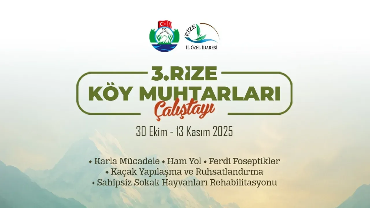 Rize İl Özel İdaresi ve ilgili kamu kurumlarının katkısıyla düzenlenecek çalıştayda, muhtarların karşılaştığı sorunlara yönelik kalıcı çözümler geliştirilmesi hedefleniyor.