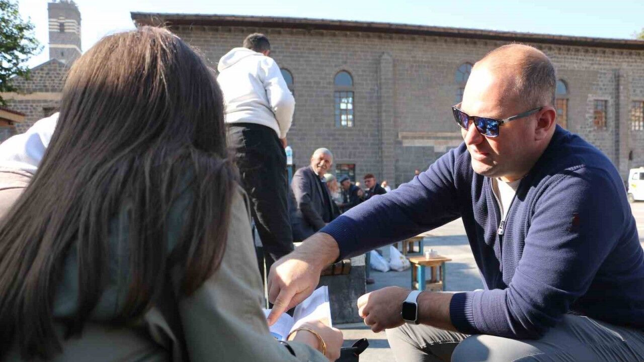 "Diyarbakır’ı severek tanıtıyoruz. Buradaki insanların bize yaklaşımı bizim hoşumuza gidiyor gerçekten. Ulu Cami ve Suriçi’nde selam vermeden gezdiğimiz bir vakit yoktur. Çaldığımız her kapıda bir çayımız, yemeğimiz vardır. Arabamız 90 model, onunla beraber gezmeye çalışıyoruz. Girilmeyen sokaklara giriyoruz. Diyarbakır’ın unutulmaya yüz tutmuş yerlerini tanıtmak istiyoruz. Diyarbakır’da bulunduğumuz süre boyunca buradaki esnaf olsun ya da bu Diyarbakırlı arkadaşlarımızdan hiçbir zaman yabancılık çekmedik. Onlar bizi her zaman kucak açtılar. Birbirimizde numaramız var. Onlar beni arıyor, ben onları arıyorum. Herhangi bir başımı sıkıştığında devamlı birbirimizi aradığım zaman hemen geliyorlar. Bunun en somut örneği deprem zamanı. Ben Diyarbakır’daydım. Yakınlarımdan önce Diyarbakır’da bulunan arkadaşlarım, ‘Abi iyi misin, gidecek yerin var mı, bize gel’ diye arayanlar oldu. O zaten bizim için bir, buraya bağ kurmamızın bir nedeni de olabilir aslında. Burada olmaktan mutluyuz."
