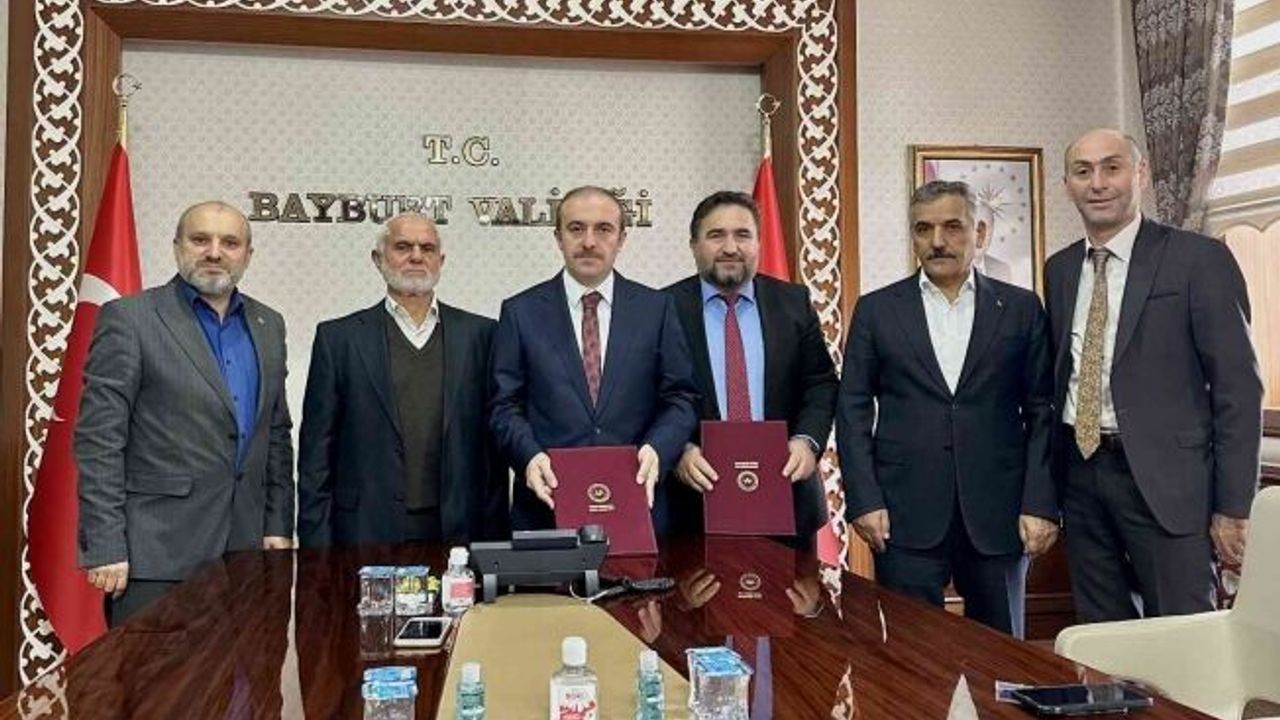 Kur’an kursu, Gençlik Merkezi, Dini-Hayır ve Sosyal Hizmetlerde kullanılmak üzere TDV Bayburt Şubesi ile Bayburt İl Müftülüğüne bağışlanan arsa ve bina protokolü, Vali Cüneyt Epcim’in katılımıyla imzalandı.