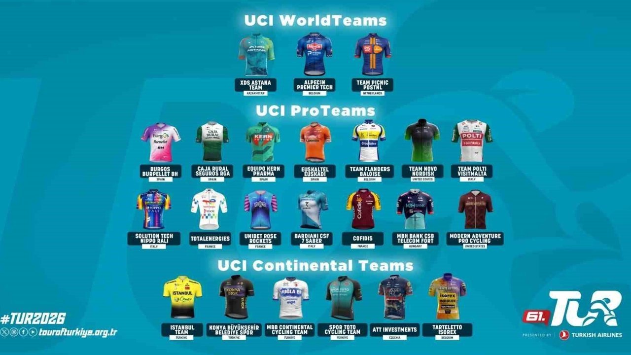 TUR 2026'da 3 WorldTeam, 14 ProTeam, 6 Continental Team kategorisinde toplam 23 UCI Takım ve 27 farklı ülkeden 161 sporcu mücadele edecek. TUR 2026'da mücadele edecek takımlar arasında Türkiye'yi temsil eden 4 Kıta Takımı yer alacak.