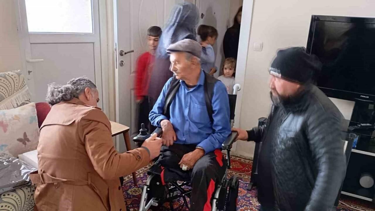 Tekerlekli sandalyesine kavuşan Enver Dede, yardımda bulunan hayırseverlere teşekkür etti.