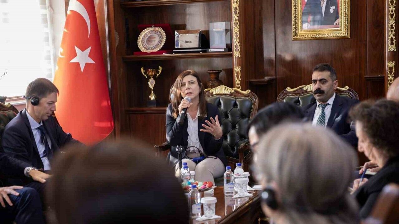 AB delegasyonu heyeti Büyükşehir Belediyesi Başkanı Serra Bucak tarafından belediyenin protokol kapısında karşılandı. Selamlaşmanın ardından Başkan Bucak, heyet ile yaptığı görüşmede, siyasal, sosyal, kültürel ve ekonomik konulara dair görüş alışverişinde bulundu.