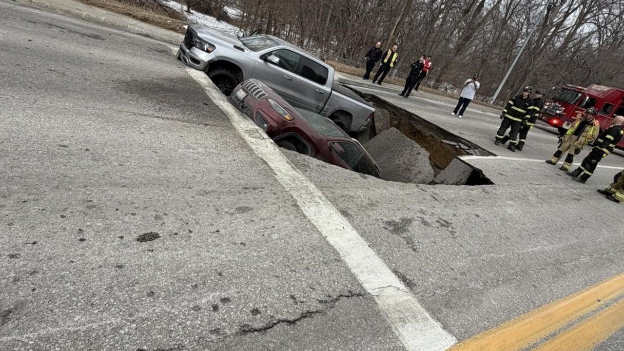 ABD'nin Nebraska eyaletinde kırmızı ışıkta bekleyen iki araç, yolun aniden çökmesiyle oluşan çukura gömüldü.