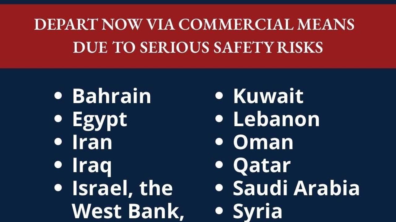 ABD Dışişleri Bakanlığı, 16 ülke ve bölgede bulunan vatandaşlarına 'ciddi güvenlik riskleri' nedeniyle bulundukları yerleri ticari yollarla derhal terk etmeleri uyarısında bulundu.