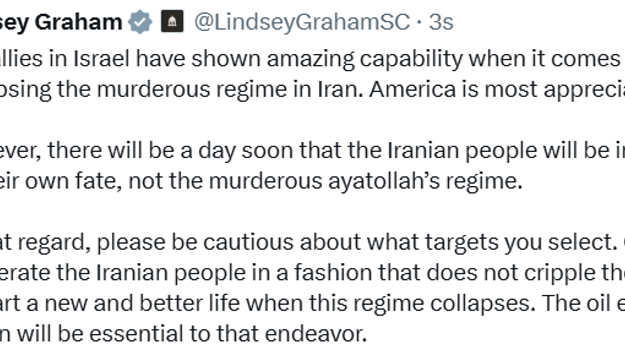 ABD'li Cumhuriyetçi Senatör Lindsey Graham, İsrail'in İran'ın petrol tesislerine yönelik saldırılarını eleştirerek, 'Lütfen seçeceğiniz hedefler konusunda dikkatli olun. Amacımız, İran halkını, bu rejim çöktüğünde yeni ve daha iyi bir hayata başlama şanslarını sekteye uğratmayacak bir şekilde özgürlüğüne kavuşturmaktır. İran'ın petrol ekonomisi bu çaba kapsamında hayati önem taşıyacaktır' açıklamasında bulundu.