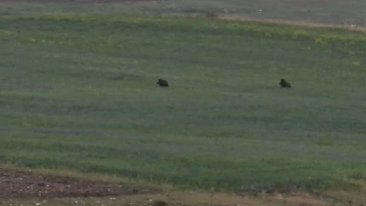 Ağrı’nın Diyadin ilçesinde boş arazide yiyecek arayan 2 domuz görüntülendi.