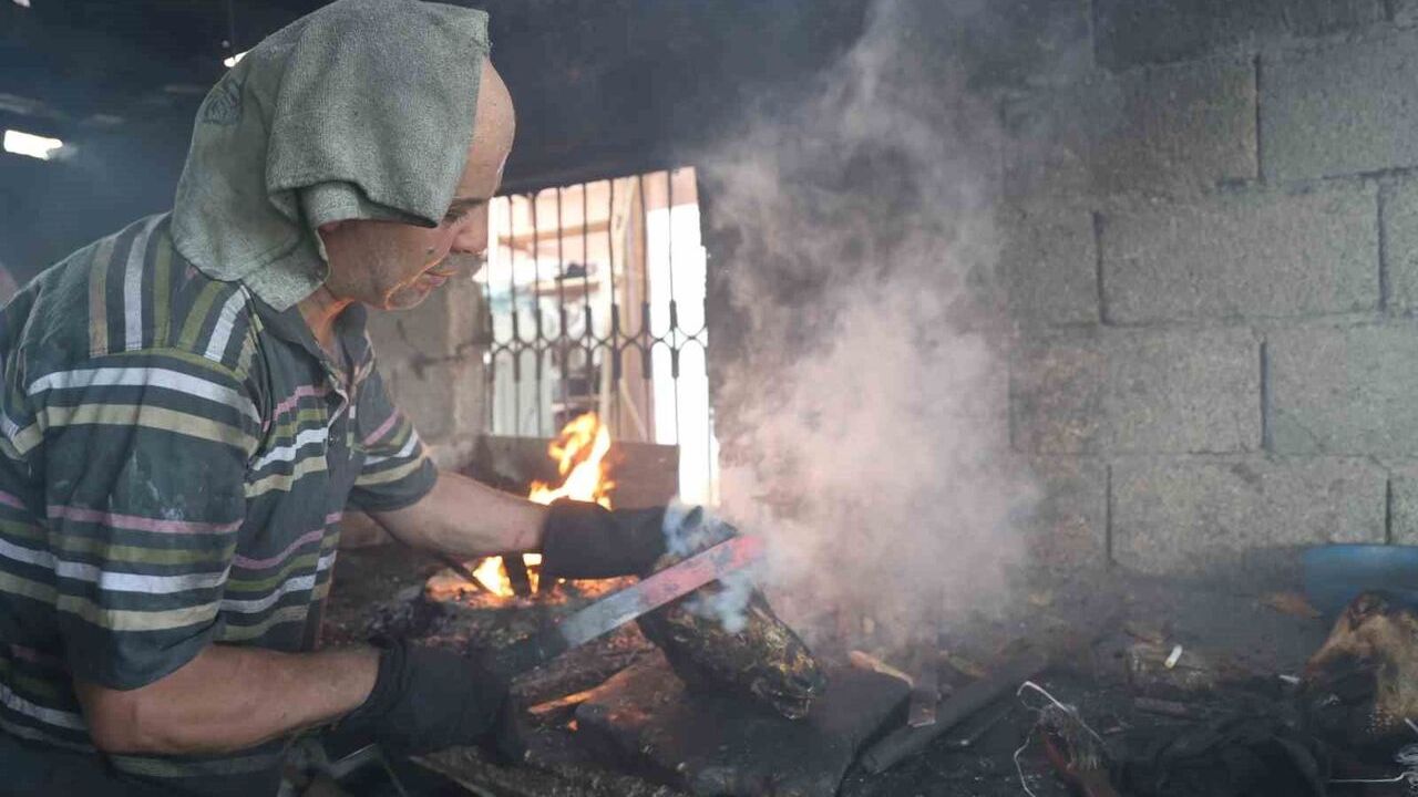 Adana’da aralarında demirci ustalarının da olduğu 14 kişilik ekip, 100 dereceye yaklaşan ocak sıcaklığında alın teri ile ’Kele ve Paça’ ütüleme mesaisi yapıyor.