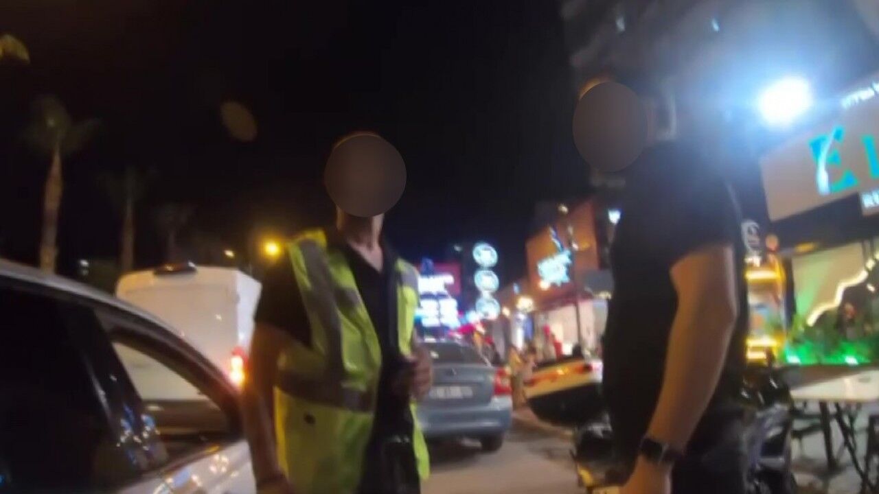 Polisin müşteri gibi valenin yanına gittiği, vale kimliği olmayan kişiyi suçüstü yakaladığı anlar da görüntülere yansıdı.