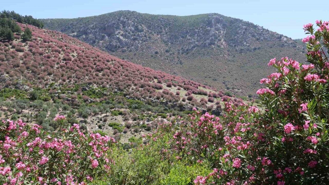 Adana’da her yıl bahar mevsiminin bu zamanlarında dağ yamaçlarını saran zakkum ağaçları, pembe tonlarındaki çiçekleri ile görsel şölen sunuyor.