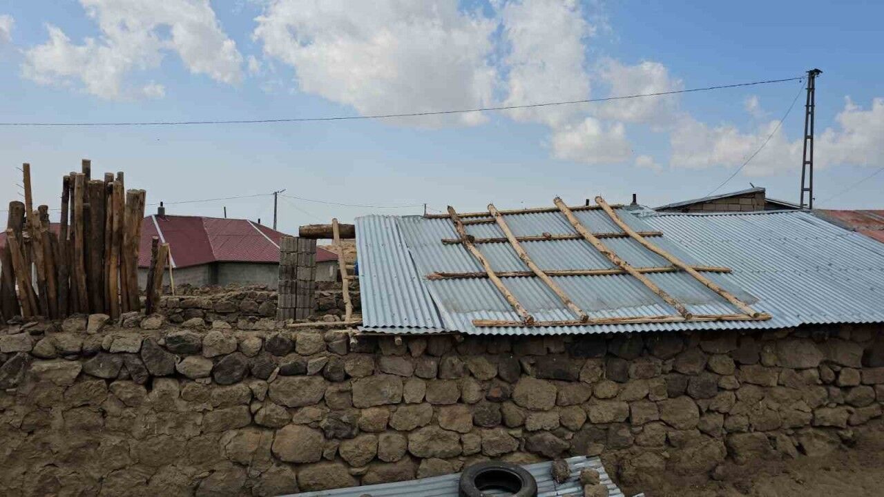 Bitlis’in Adilcevaz ilçesinde etkili olan rüzgar, ahır ve eklentilerinin çatılarının uçmasına neden oldu.