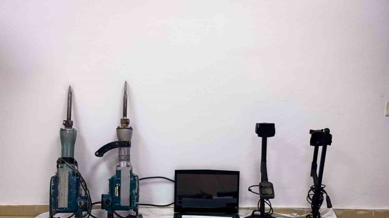 Operasyonda, kaçak kazıda kullanılan 2 el dedektörü, 1 mini dedektör, 1 yön gösterici, 1 dizüstü bilgisayar, 2 hilti ve çok sayıda kazı malzemesi ele geçirildi.