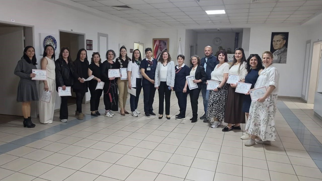23 Mart 2026 ile 21 Nisan 2026 tarihleri arasında gerçekleştirilen eğitim programı kapsamında, katılımcılara alanında uzman eğitmenler eşliğinde teorik ve uygulamalı eğitimler verildi. Program ile sağlık personelinin mesleki bilgi ve becerilerinin artırılması hedeflendi. Eğitim süreci, Başhekim Yardımcısı Hilal Bektaş Uysal'ın katılımıyla gerçekleştirilen sertifika takdim töreni ile sona erdi. Törende programa katılan sağlık çalışanlarına sertifikaları takdim edildi. Yetkililer, sağlık hizmetlerinin niteliğini artırmaya yönelik düzenlenen bu tür eğitim programlarının, hem mesleki gelişime hem de hasta bakım kalitesine önemli katkılar sunduğunu belirtti. Programa katılan sağlık profesyonellerine teşekkür edilerek, meslek hayatlarında başarılarının devamı temenni edildi.