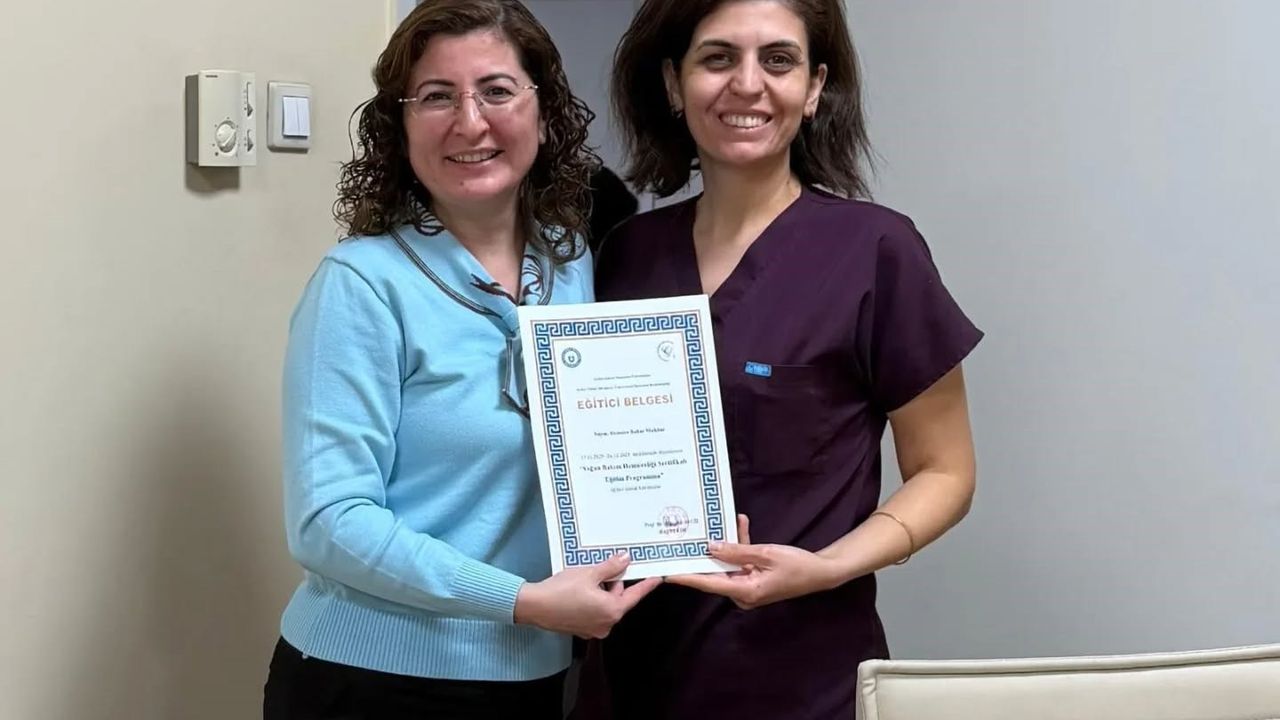 Aydın ADÜ Hastanesi'nde düzenlenen Yoğun Bakım Hemşireliği Sertifikalı Eğitim Programı tamamlanırken, eğitimcilere belgeleri takdim edildi.