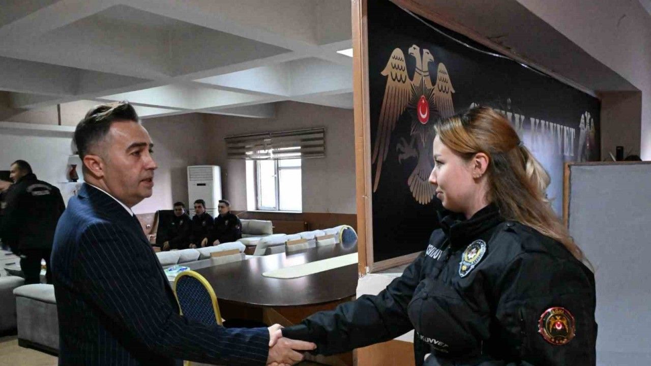 Ağrı İl Emniyet Müdürü Göksel Önder, Çevik Kuvvet Şube Müdürlüğünü ziyaret ederek görevlerini başarıyla sürdüren polis memurlarına başarı belgesi takdim etti.