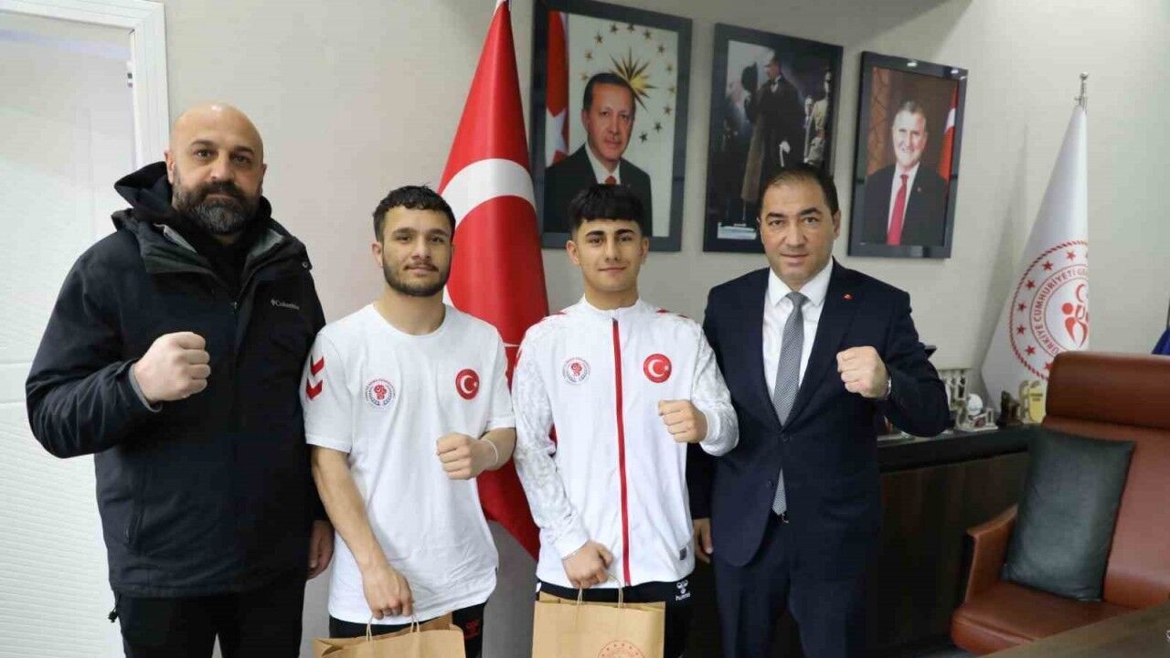 Konya’da 17-23 Şubat 2025 tarihleri arasında düzenlenen Ali Kılınçoğlu ve Turhan Çumralıgil 100. Yıl Büyük Erkekler Türkiye Ferdi Boks Şampiyonası’nda 60 kiloda Türkiye üçüncüsü olan Sezgin Acar ile Karadağ’ın Budva kentinde gerçekleştirilen Gençler Dünya Kupası’nda Ağrı’yı ve Türkiye’yi temsil eden Ramazan Alptekin, İl Ağrı Gençlik ve Spor İl Müdürü Ahmet Çelebi’yi ziyaret etti.