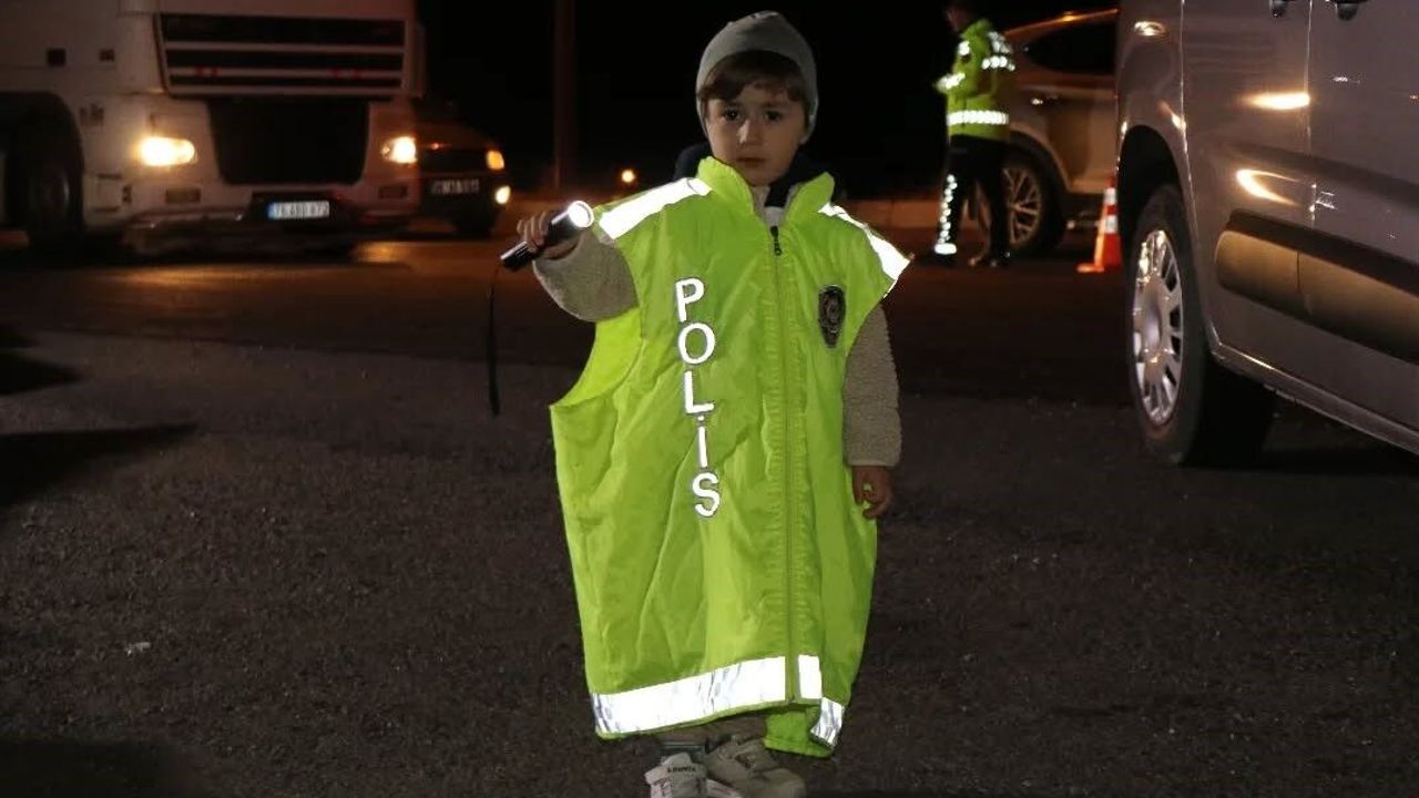 Ağrı uygulama noktasında görev yapan polislerin yanında duran küçük bir çocuk, üzerine giydiği "Polis" yazılı reflektörlü yelekle adeta ekibin en küçük üyesi oldu. Elindeki fenerle araçlara yön veren minik çocuk, görev başındaki polisleri taklit ederek sürücülere tebessüm ettirdi. Gece saatlerinde yapılan uygulamada vatandaşlar, bu sıcak ve samimi görüntü karşısında duygusal anlar yaşadı. Polis ekipleri ise çocuğun ilgisinden memnuniyet duyduklarını belirterek, çocuklara güvenlik bilincinin küçük yaşlarda aşılanmasının önemine dikkat çekti.