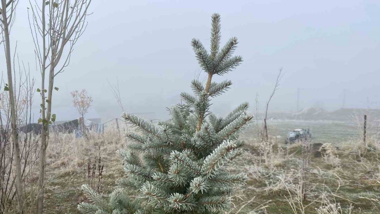 Sabahın ilk ışıklarıyla dışarı çıkan vatandaşlar, araç camlarında biriken ince buz tabakaları ve çatıları kaplayan kırağı manzarasıyla karşılaştı. Özellikle yeşil alanlarda bitki örtüsü ve çiçeklerin üzerinde zarif bir şekilde tutunan bu buz oluşumu, ilçede kış mevsiminin yaklaştığını gösterdi.
