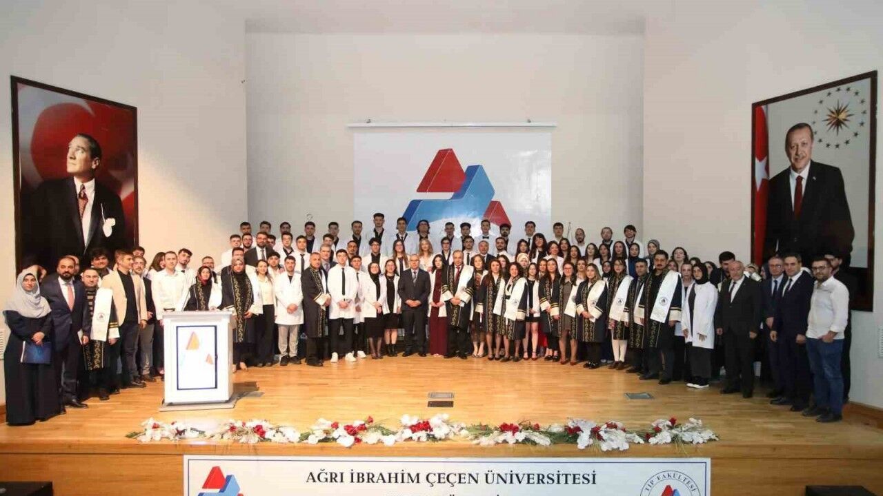 Ağrı İbrahim Çeçen Üniversitesi (AİÇÜ) Tıp Fakültesi tarafından 14 Mart Tıp Bayramı kapsamında kutlama programı düzenlendi. Programda, Tıp Fakültesi birinci sınıfta öğrenim gören 64 öğrenci beyaz önlük giydi.
