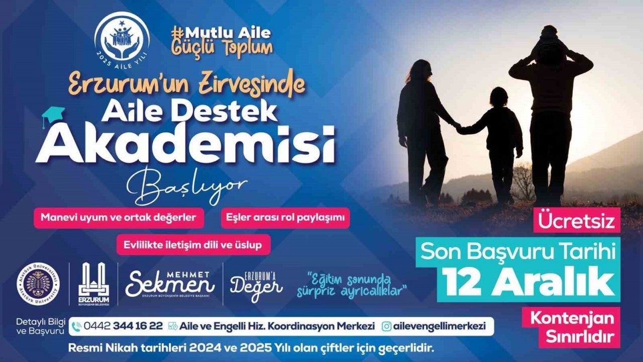 Erzurum Büyükşehir Belediyesi, kentteki yeni evli çiftlerin sağlıklı bir aile yapısı kurmalarına destek olmak amacıyla "Aile Destek Akademisi" adıyla yeni bir eğitim programı başlatıyor. Aile ve Engelli Hizmetleri Şube Müdürlüğü tarafından organize edilen akademi, çiftlere geniş bir yelpazede rehberlik sunmayı hedefliyor.