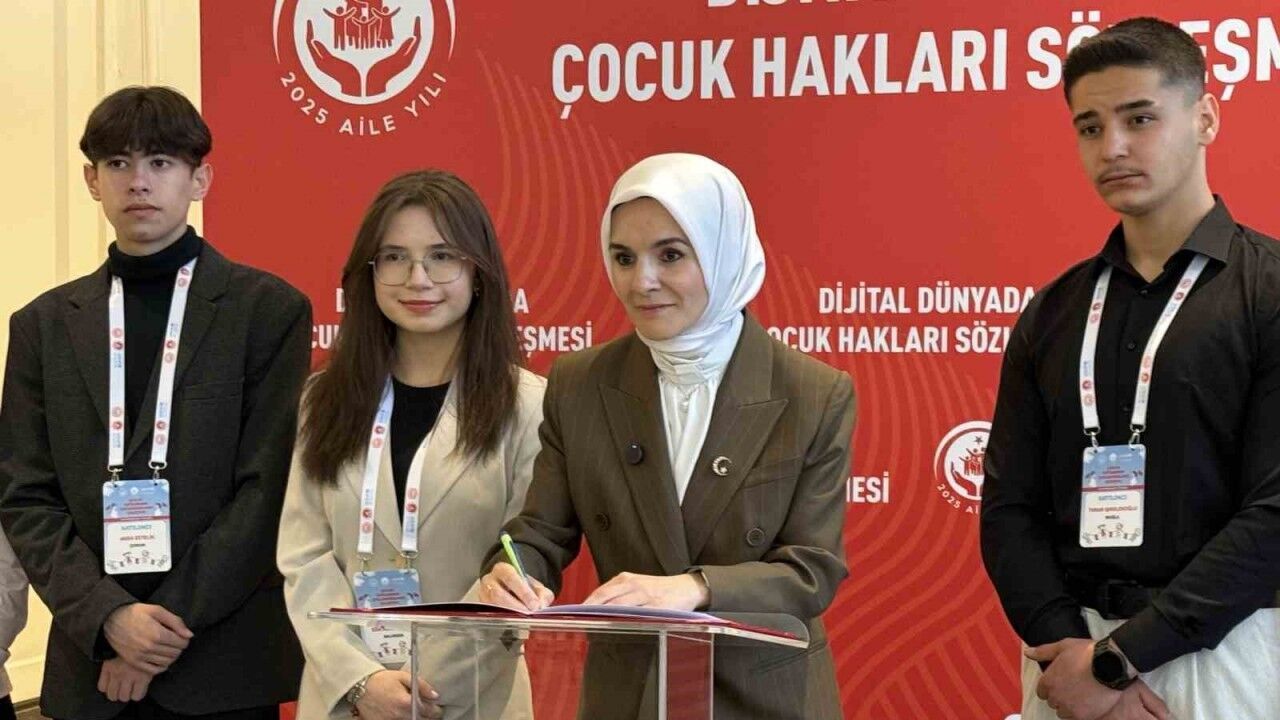 Aile ve Sosyal Hizmetler Bakanı Mahinur Özdemir Göktaş, "Dijital Dünyada Çocuk Hakları Sözleşmesi"nin ilk imzasını attı. Törende konuşan Göktaş, "Bakanlık olarak, çocukların dijital dünyada güvenle var olabilmeleri için gerekli önlemleri alıyoruz. Ancak biliyoruz ki, yasa kadar güçlü bir toplumsal seferberlik ve toplumsal irade de şart. Dijital dünyada Çocuk Hakları Sözleşmesi bu anlayışın bir yansıması. Sözleşmenin ilkeleri, çocukların dijital ortamlarda güvenliğini sağlamak, haklarını korumak ve onları desteklemek üzerine inşa edildi" dedi.