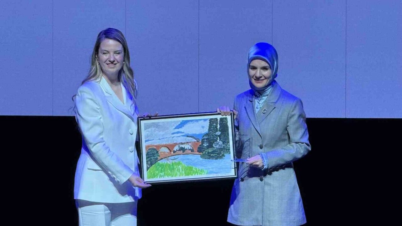 Konuşması sonrası Bakan Göktaş’a Kalben Derneği Kurucu Genel Başkanı Pelin Çalışkanoğlu tarafından plaket takdim edildi.