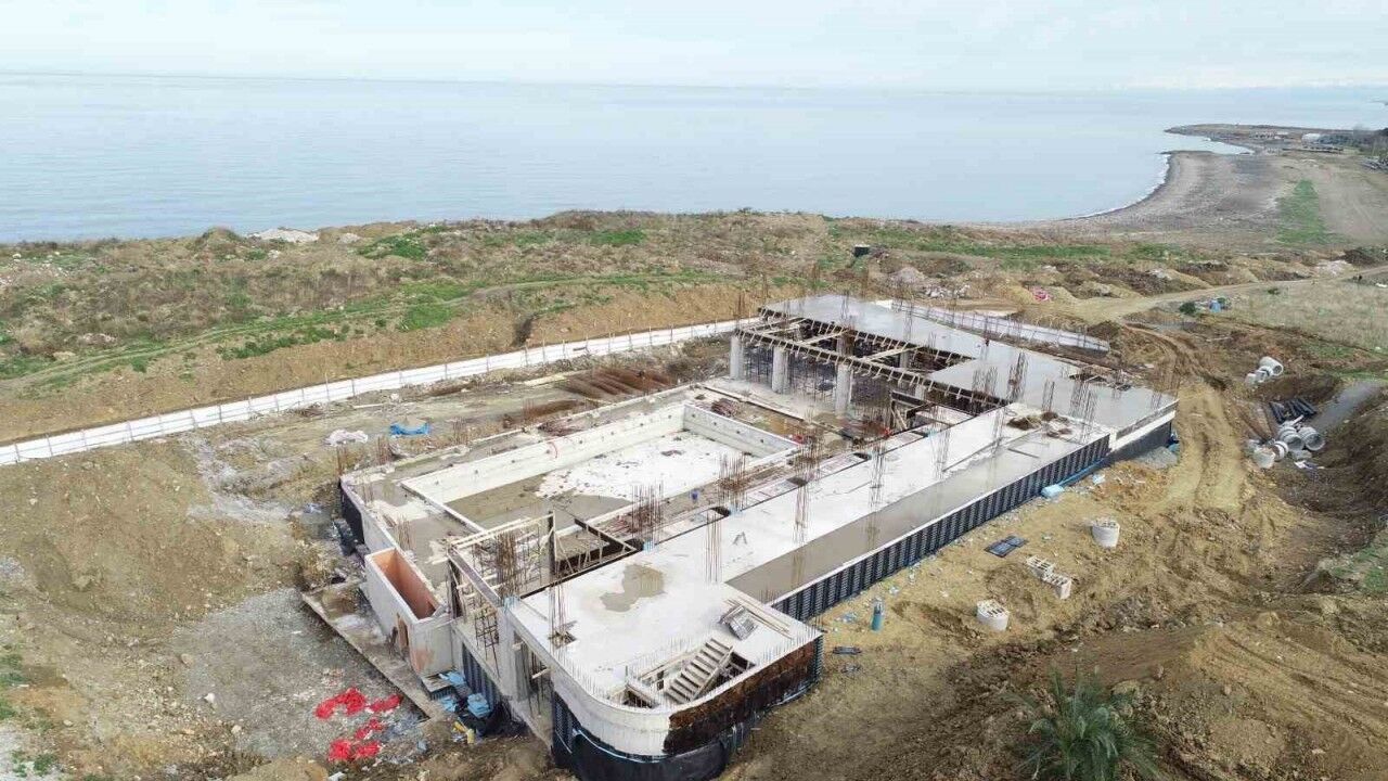 Trabzon’un Akçaabat ilçesinde Yarı Olimpik Kapalı Yüzme Havuzu inşaatı sürüyor.