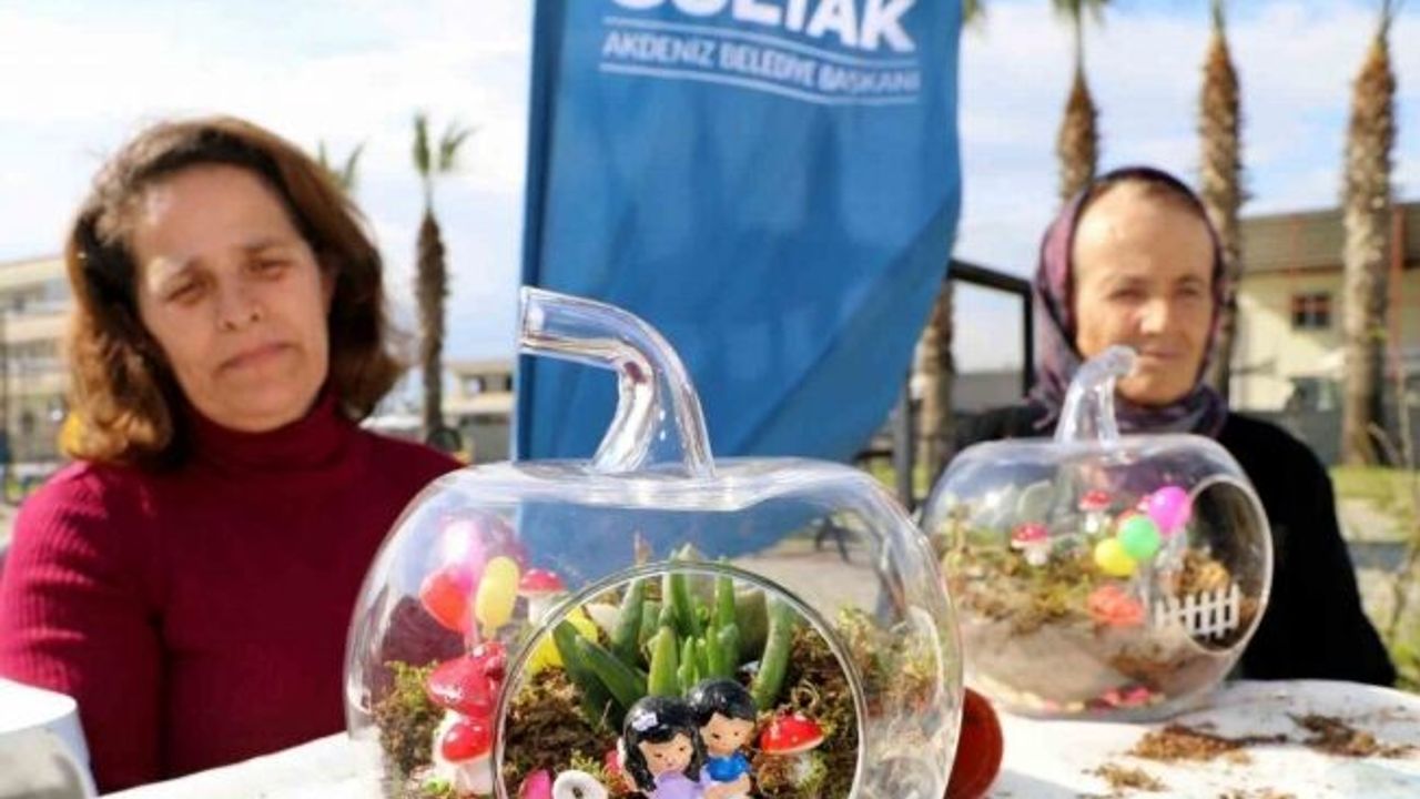 Akdeniz Belediyesi, depremzede kadınlar için ’Umudumu Yeşertiyorum’ adıyla teraryum atölyesi düzenlendi. Etkinlikte afet mağduru kadınlar, umutlarını, hayallerini ve dileklerini temsil eden figür ve çiçekleri kullanarak teraryumlarını süsledi, geleceğe dönük umutlarını yeşertti.