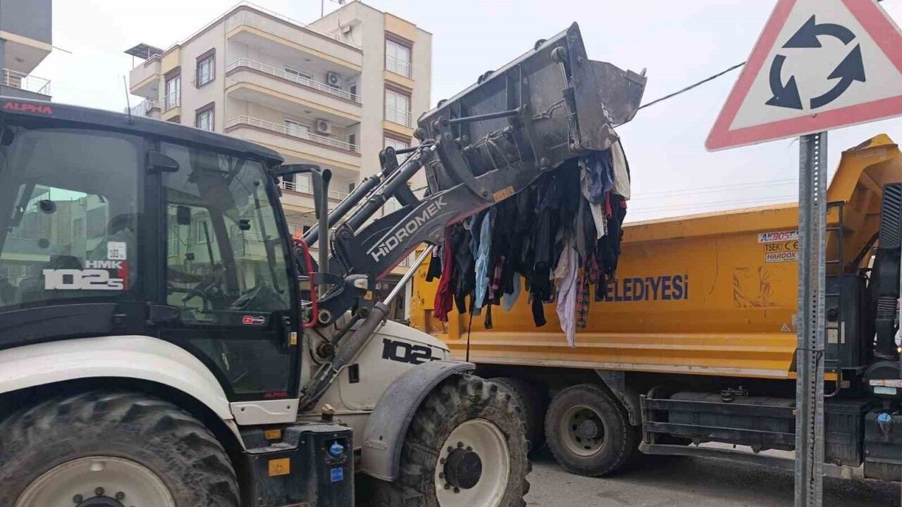 Mersin’in Akdeniz ilçesinde caddeye dökülen tekstil atıkları ve kıyafet yığınları, belediye ekiplerinin hızlı müdahalesiyle kısa sürede temizlendi.