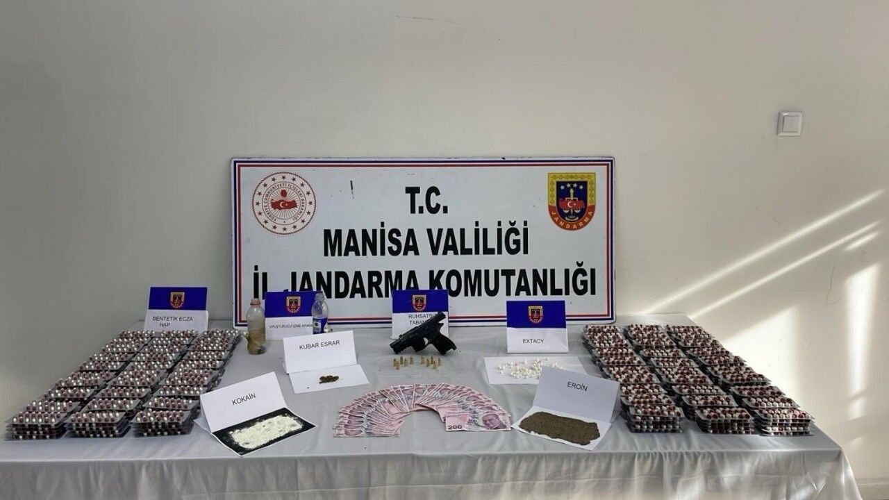 Manisa’nın Akhisar ilçesinde, Akhisar İlçe Jandarma Komutanlığınca M.Y., G.S., R.I., E.E. ve A.İ.’ye ait 3 adres ile şahısların üzerlerinde yapılan aramalarda; 3 bin 851 adet sentetik ecza hapı, 3 adet uyuşturucu kullanma aparatı, 27.25 gram yüksek düzeyli uyuşturucu, 1 adet ruhsatsız av tüfeği, 1 adet ruhsatsız tabanca, 10 adet tabanca mermisi, 6 bin 360 TL suçtan elde edildiği değerlendirilen para ele geçirildi.