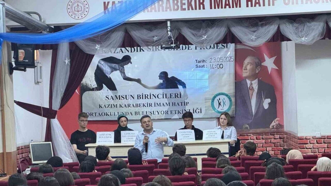 Samsun İlkadım Kazım Karabekir İmam Hatip Ortaokulunda hayata geçirilen "Biz Kazandık, Sıra Sizde" projesi, eğitimde akran öğretiminin önemini gözler önüne seriyor. Proje çerçevesinde Liselere Giriş Sınavı’nda (LGS) başarı elde eden öğrenciler, ortaokul öğrencileriyle buluşarak deneyim paylaşımı yaptı.