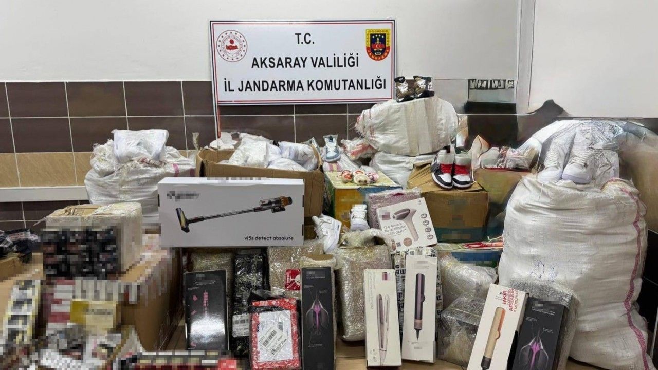 Aksaray’da jandarma ekiplerinin şüphe üzerine durdurduğu kamyonda binlerce kaçak ürün ele geçirildi.