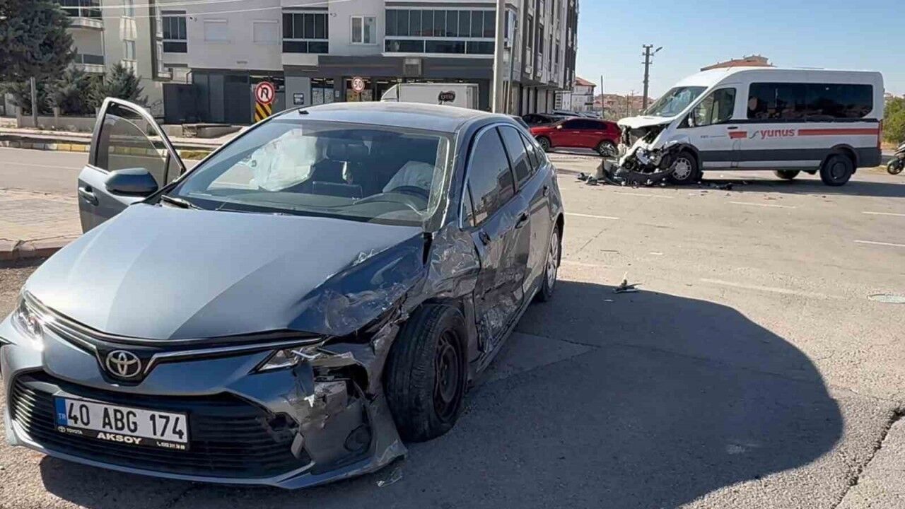 Aksaray’da servis minibüsü ile otomobilin çarpışması onucu yaşanan kazada 1 kişi yaralandı.