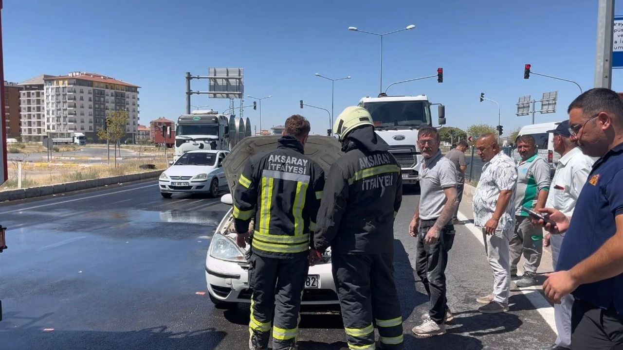 Olay, Ahmet Davutoğlu Bulvarı Konya Adana Kara yolu kesişimi şehir merkezi istikametinde meydana geldi. Edinilen bilgiye göre, 68 KD 582 plakalı otomobil sürücüsü Şenay İlgün (52) ışıklarda aracından dumanlar çıktığını fark etti. İlgün, hemen aracını yol kenarına çekerek araçta bulunan babası ve annesini araçtan indirdi. Bagajdan yangın tüpünü alarak ilk müdahaleyi yapan sürücü, 112 Acil Çağrı Merkezini arayarak yardım istedi. Şans eseri olay yerinde çim sulaması yapan belediyeye ait su tankeri de çıkan yangına müdahale etti. İhbar üzerine olay yerine sağlık, itfaiye ve polis ekipleri sevk edildi. Kısa sürede olay yerine ulaşan itfaiye ekipleri yanan araca müdahale ederek yangını söndürdü. Polis ekipleri çevrede güvenlik önlemeleri alarak trafiği belli bir süre durdurdu. Araçta maddi hasar meydana gelirken, otomobil güvenli bölgeye çekilerek yol tekrar trafiğe açıldı. Yangında herhangi bir yaralanma veya can kaybı yaşanmazken polis olayla ilgili inceleme başlattı.
