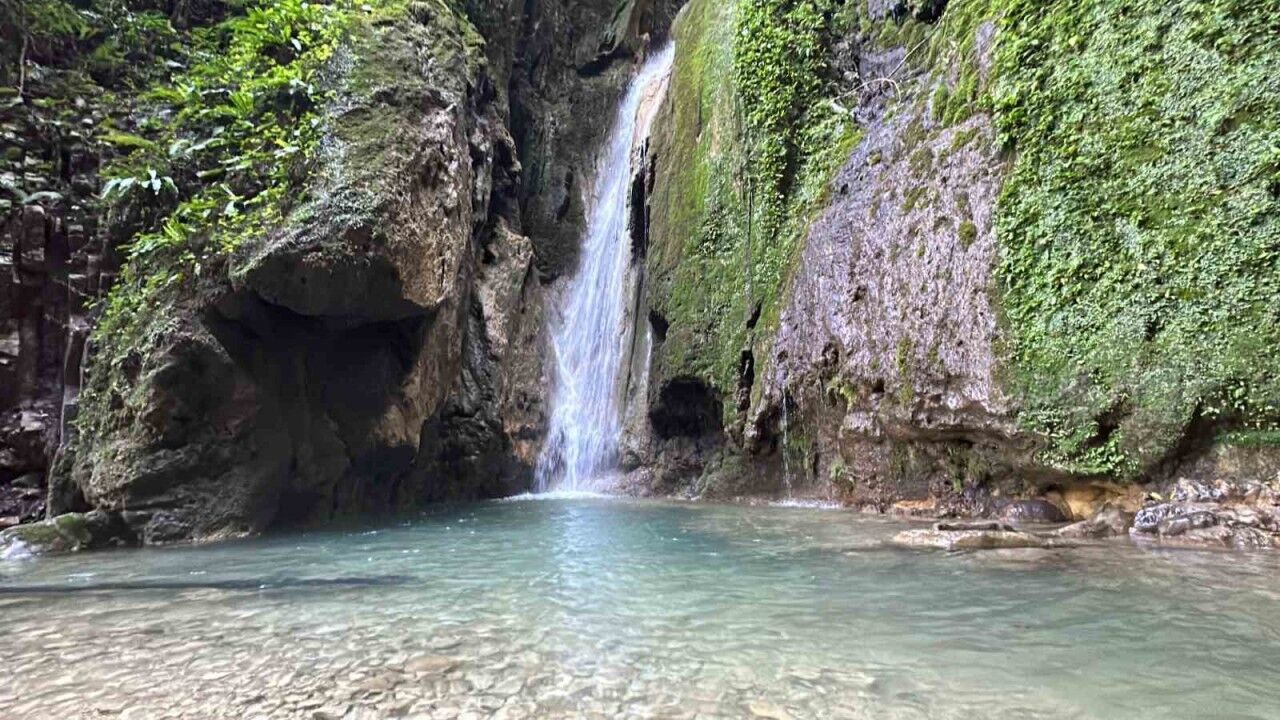 Düzce’nin Akçakoca ilçesinde yer alan Aktaş Şelalesi, ziyaretçileri kendisine hayran bırakıyor.