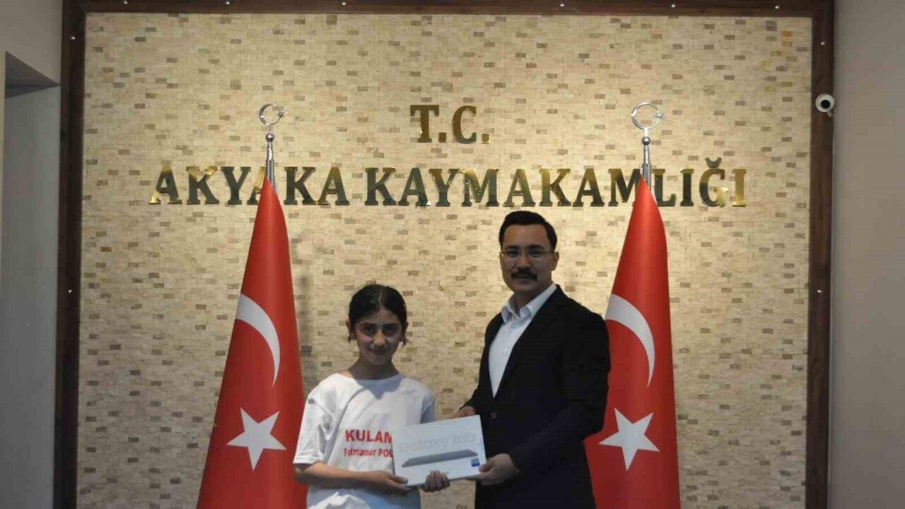 Kars’ın Akyaka ilçesi Kaymakamı İsmail Demirtaş, 81 il ve Kuzey Kıbrıs Türk Cumhuriyeti’nden katılan 830 öğrencilerin yarıştığı 7. Akıl ve Zeka Oyunları Türkiye Finali’nde, Ortaokul kategorisi ’’Kulami’’ oyununda Türkiye 2’incisi ve Kars 1’incisi ‘si olan Atatürk Yatılı Bölge Ortaokulu öğrencisi Fatmanur Polat’ı makamında kabul etti.