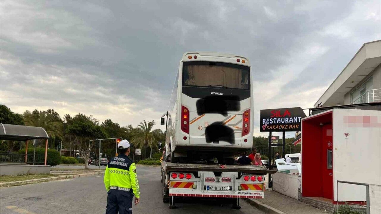 Alanya İlçe Jandarma Komutanlığı Trafik ekipleri tarafından Türkler Mahallesi’ndeki oteller bölgesinde yapılan denetimlerde, gerekli izin belgeleri olmadan personel taşıdığı belirlenen bir servis otobüsü durduruldu. Yapılan kontrollerde sürücünün yetki belgesiz taşımacılık yaptığı tespit edildi. Bunun üzerine minibüs sürücüsüne, 46 bin 392 TL idari para cezası uygulandı. Ayrıca minibüs 60 gün süreyle trafikten men edilerek otoparka çekildi.