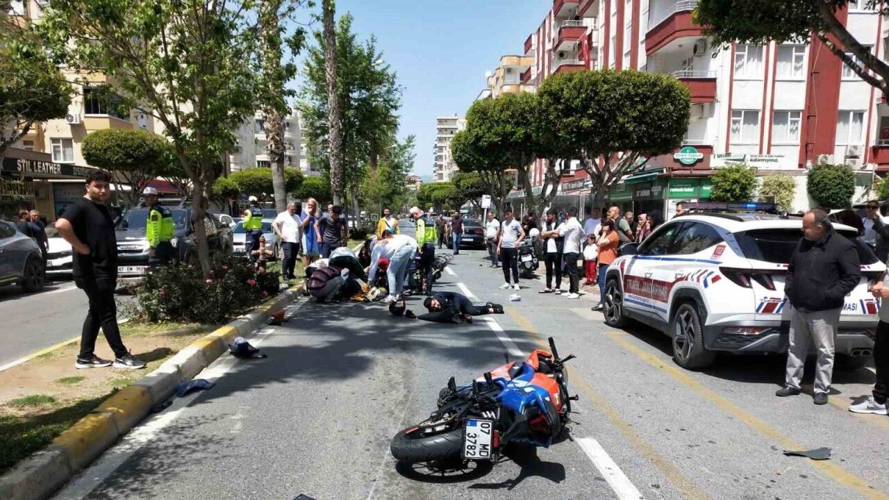 Antalya’nın Alanya ilçesinde aynı yönde seyir halinde olan iki motosikletin çarpışması sonucu meydana gelen kazada 2 kişi yaralandı.